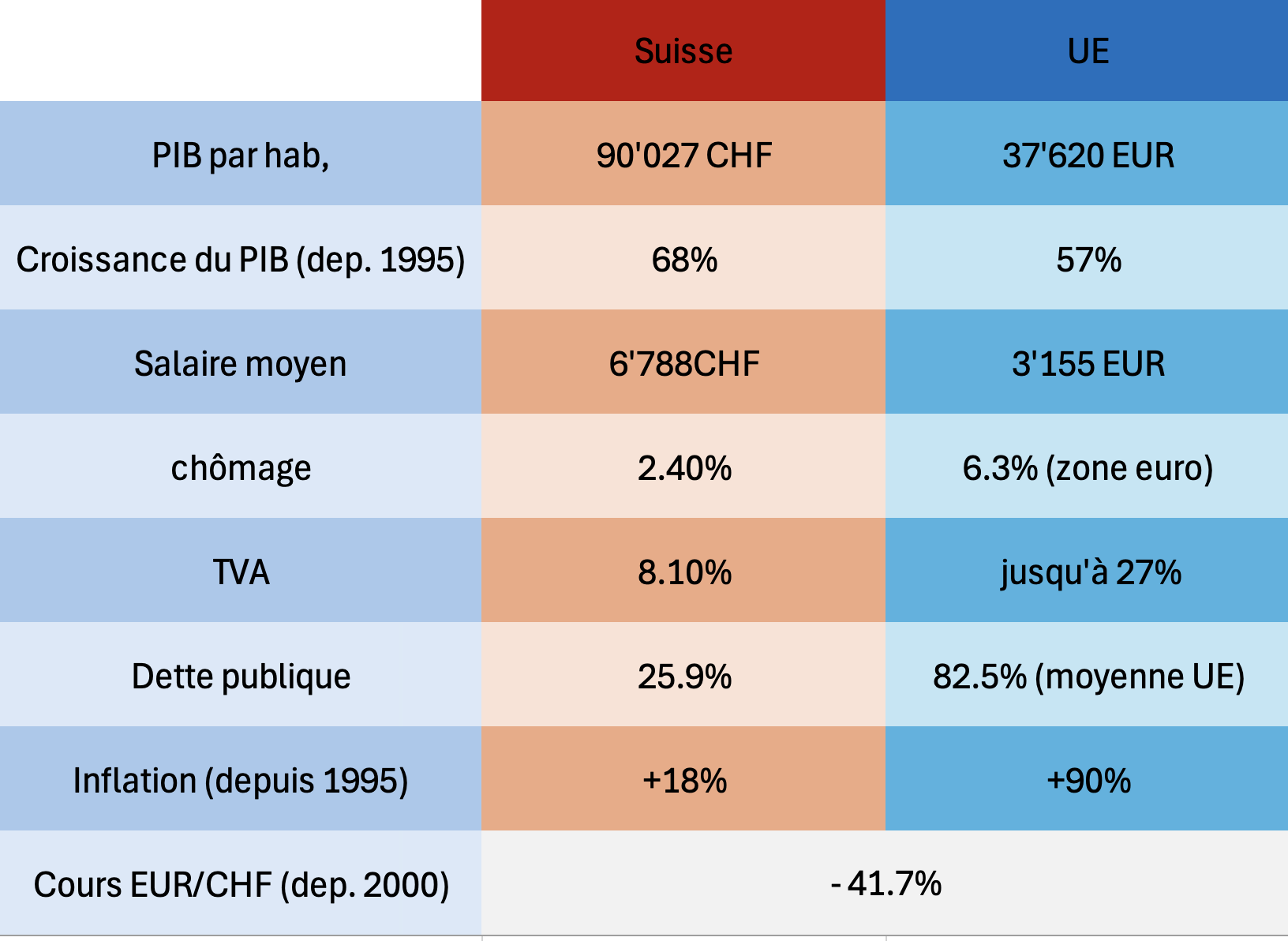 Une comparaison économique montre que la Suisse est bien mieux placée que l’Union européenne.